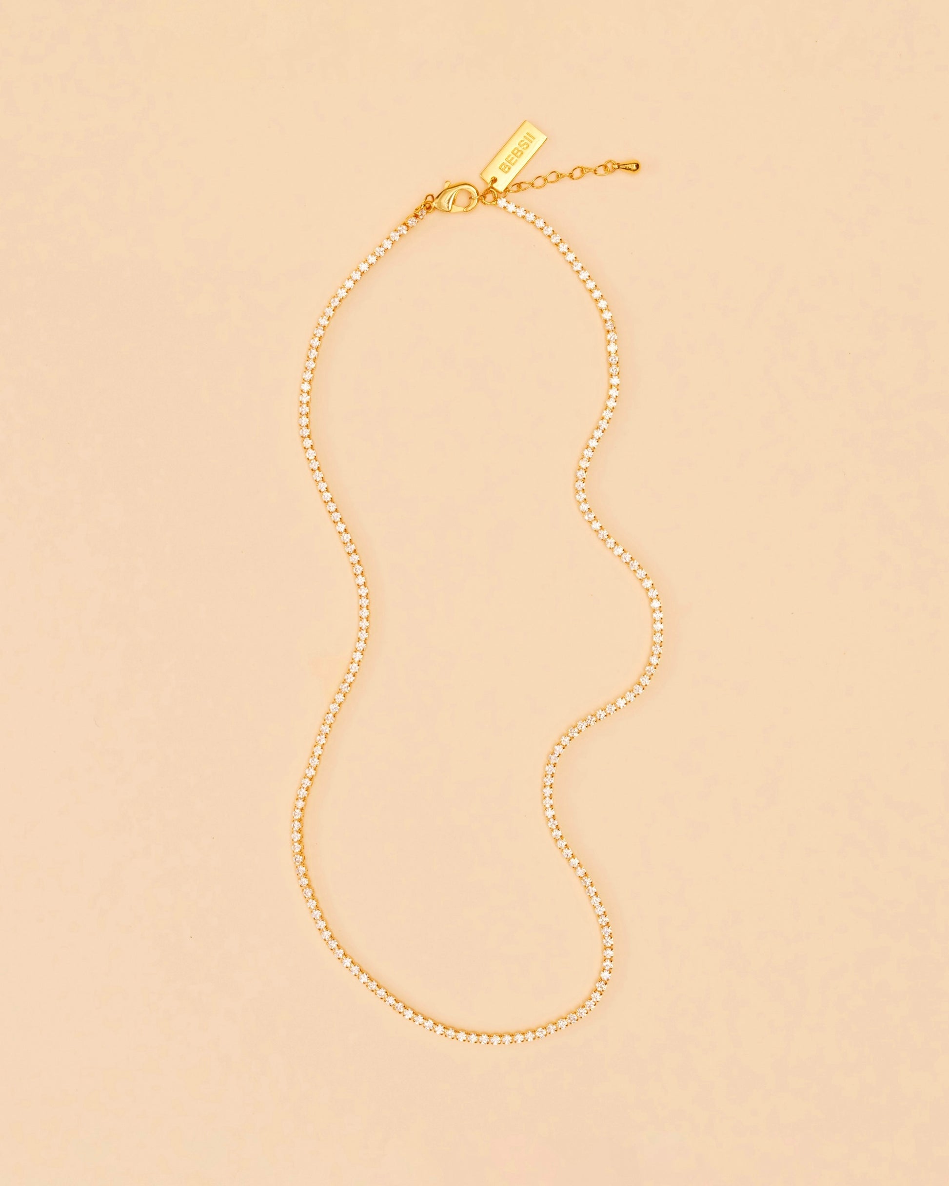 Halskjedet er laget av messing, forgylt med høykvalitets 925 sterling sølv og zirkonia stener.